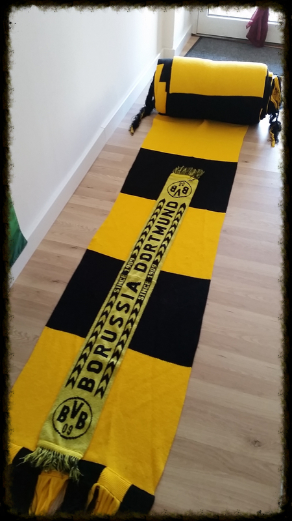 Mein ganzer Stolz. Seit geraumer Zeit befindet sich der wohl größte, breiteste und schwerste BVB Schal in meinem Besitz.